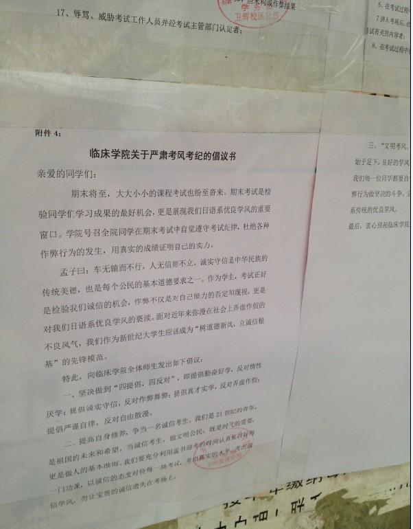 期末考试即将来临,为了严肃考风考纪,加强对学生的诚信教育,从根源上杜绝考试作弊现象,营造良好的学习和考试氛围,临床学院包括卫辉校区、焦作校区、京东校区分别于12年12月26日-13年1月8日召开考风考纪教育大会。