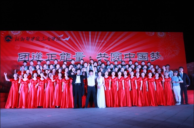 4月26日晚,新乡医学院三全学院“团递正能量,共圆中国梦”第三届大学生合唱比赛在露天文化广场举行,我院合唱团在此次比赛中勇夺桂冠,我院指挥李一铎获得最佳指挥奖。