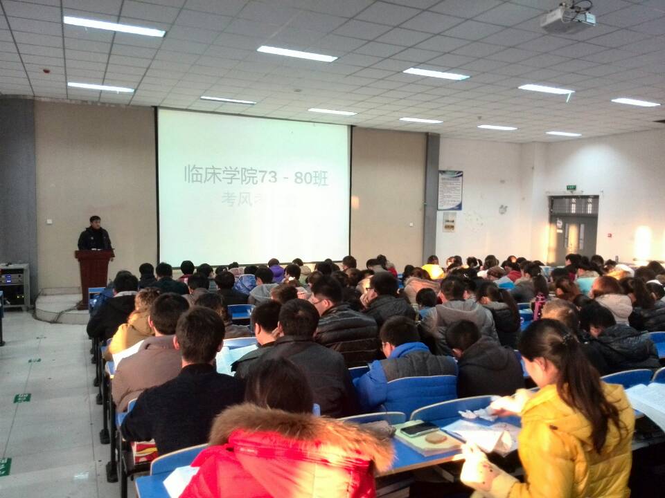 2013年12月30日,临床学院开展“自信应考,我为自己考试”考风考纪教育活动。针对临近的期末考试,对全院学生开展了诚信学习、自信应考的考前教育。