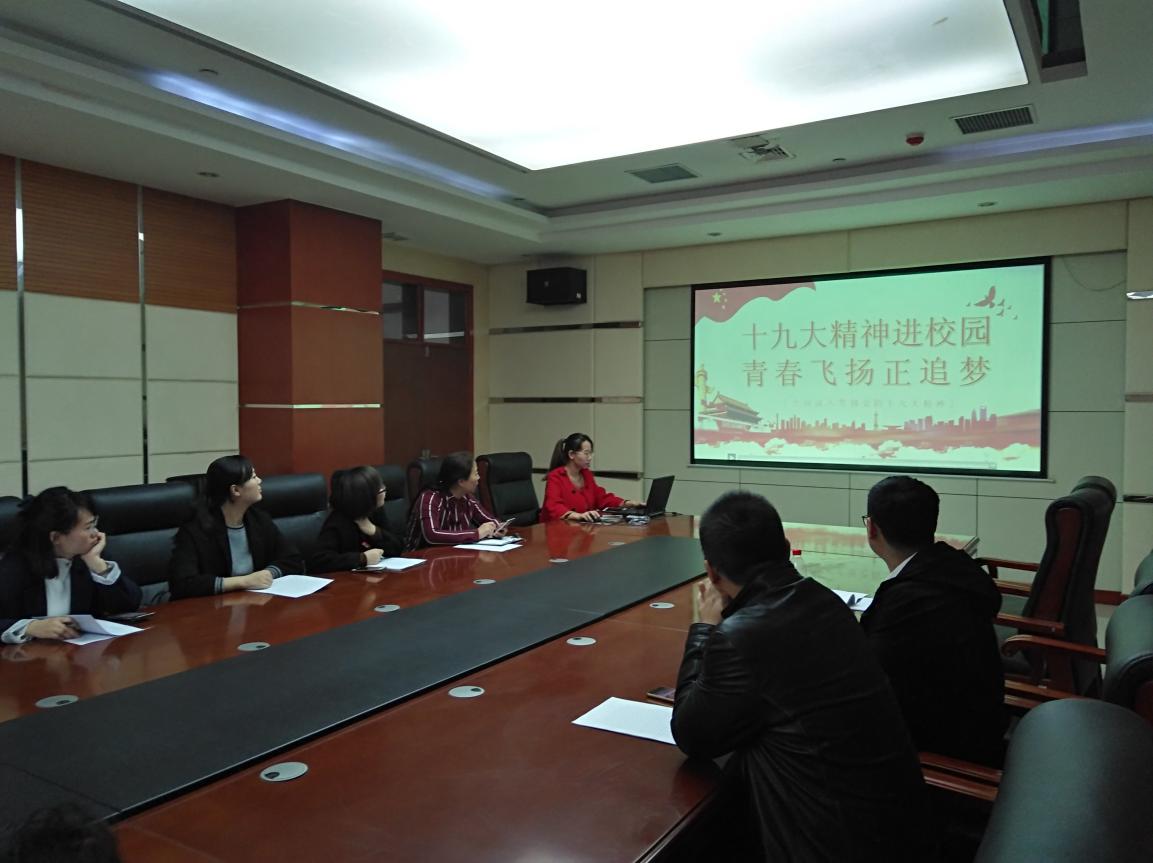 本次会议由高焕君同志主持,会议开始高焕君同志为每位党员同志发放党的十九大报告原文文件,并带领我院全体党员同志共同学习“党的十九大学习笔记”内容。随后高老师又为我们进行了关于十九大的深入学习,“十九大精神进校园,青春飞扬正追梦”。从我们党员教师的立场出发,如何更好的贯彻落实十九大精神。