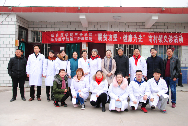 2017年12月13日,新乡医学院三全学院副院长沈雁霞带领临床学院和新乡医学院第三临床学院的内科,外科,中医,肿瘤,全科,老年科,妇科,超声科专家及标准化病人协会学生志愿者一行十六人,参加了脱贫攻坚,健康为先辉县市南村镇义诊活动。前来就诊的村民络绎不绝,免费义诊140余人次,其中B超18人次、心电图29人次、血糖40余人次,血压60余人次,为村民进行了高血压、糖尿病、冠心病等慢性病预防宣传。对测量结果异常的居民提出了相应的建议。 义诊同时,副院长沈雁霞还为村民赠送了书写有“预防艾滋、健康你我”的天堂牌雨伞。