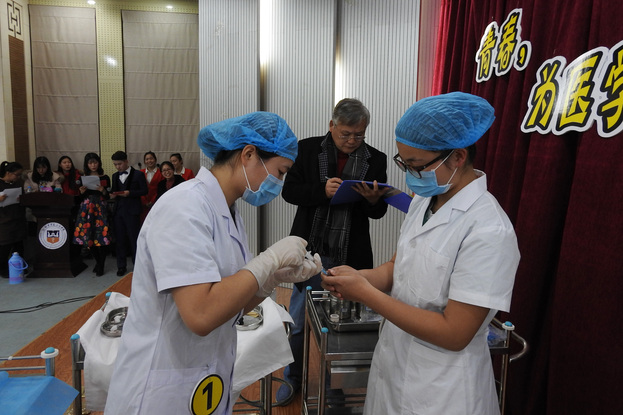 比赛之前,教务长杜华贞致辞。她说,当前全国上下正在深入开展党的十九大精神的宣传教育活动,我们要以习近平总书记“新时代中国特色社会主义思想”为指引,不忘初心、牢记使命,提高办学质量,练就专业本领,培养优秀人才,迎接时代挑战,助力我院加快向应用技术型大学转型发展,为服务健康河南和健康中国做出新的贡献。