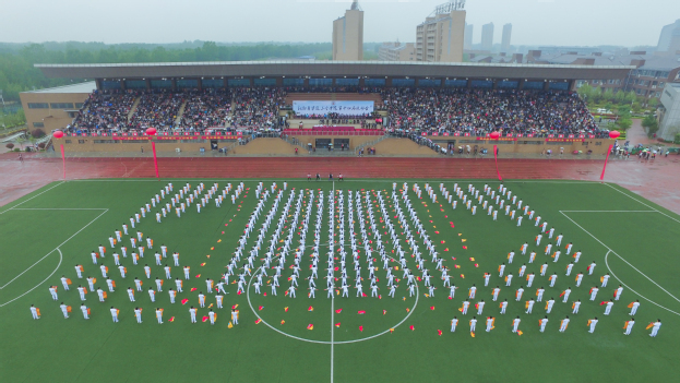 2018年4月12日上午,我校第十四届运动会在平原校区操场隆重开幕。我校党委书记王志凯,党委副书记王金文,副院长王彦杰,党委副书记张钢,副院长沈雁霞,教务长杜华贞,后勤总监马波,学务长邱永建出席,学校各单位4000余名师生参加,开幕式由院办主任史世峰主持。