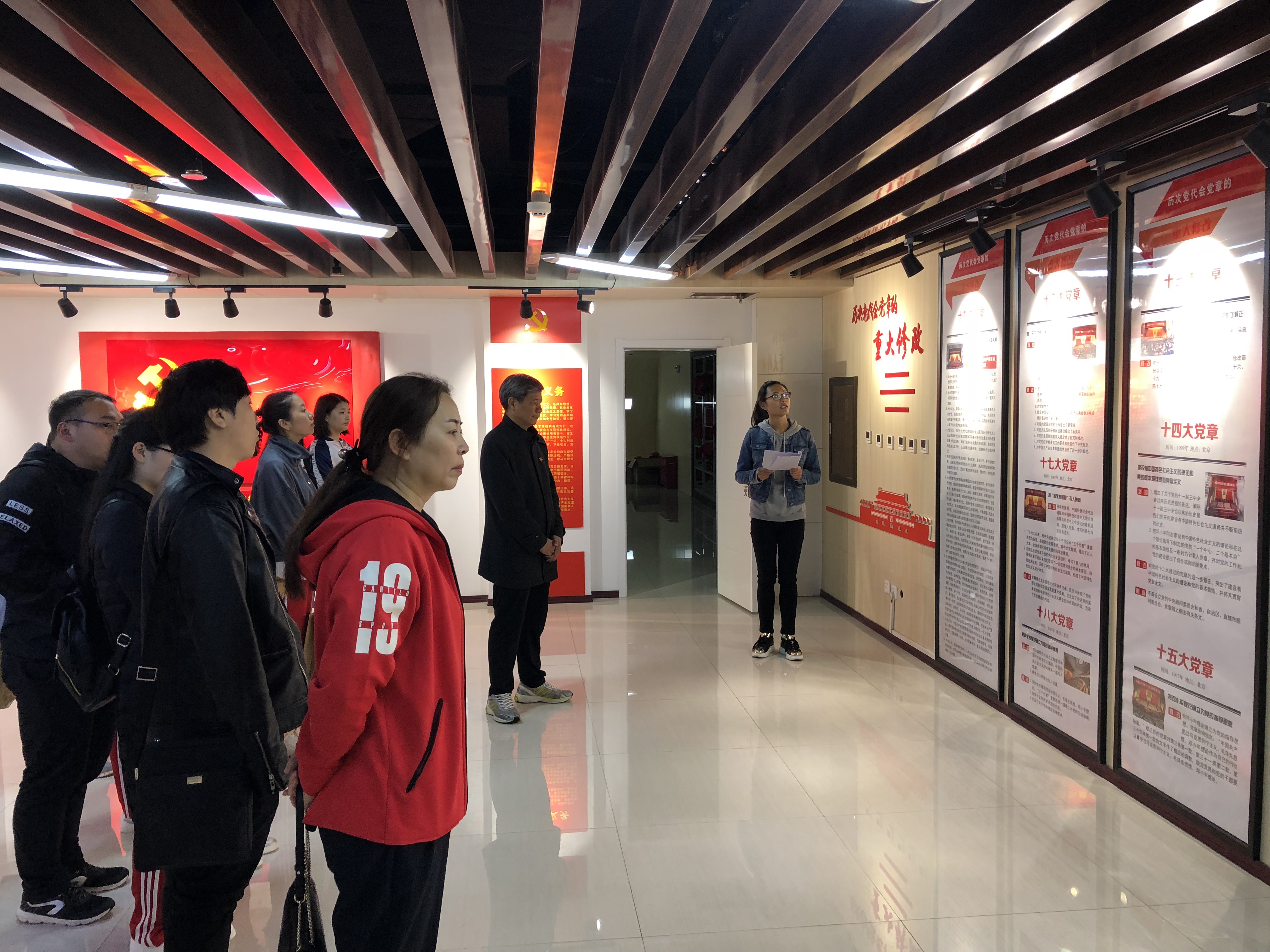 从中国共产党成立到十九大的顺利召开,学习馆以多样的形式全面展示了我党96年来波澜壮阔的奋斗历程和举世瞩目的辉煌业绩。在“红色记忆铸党魂”展区,全体教师观看了《新时代来了》、《厉害了,我们的新时代》等视频短片,视频中习近平书记铿锵有力的话语,紧紧围绕中国特色社会主义进入新时代的科学依据、主要内涵、重大意义等话题进行了系统、生动的阐释。在“铭记誓词感党恩”展区,鲜红的党旗熠熠生辉,全体党员面对党旗,举起右拳,重温入党誓词。当宣誓声响起时,现场所有人都深受感染,内心澎湃激动。