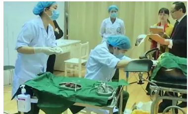 决赛分为四站,比赛中,需要选手们轮流做医疗小组组长,组织大家分工合作解决问题。如决赛院前急救站、心电图站、刨腹探查等。