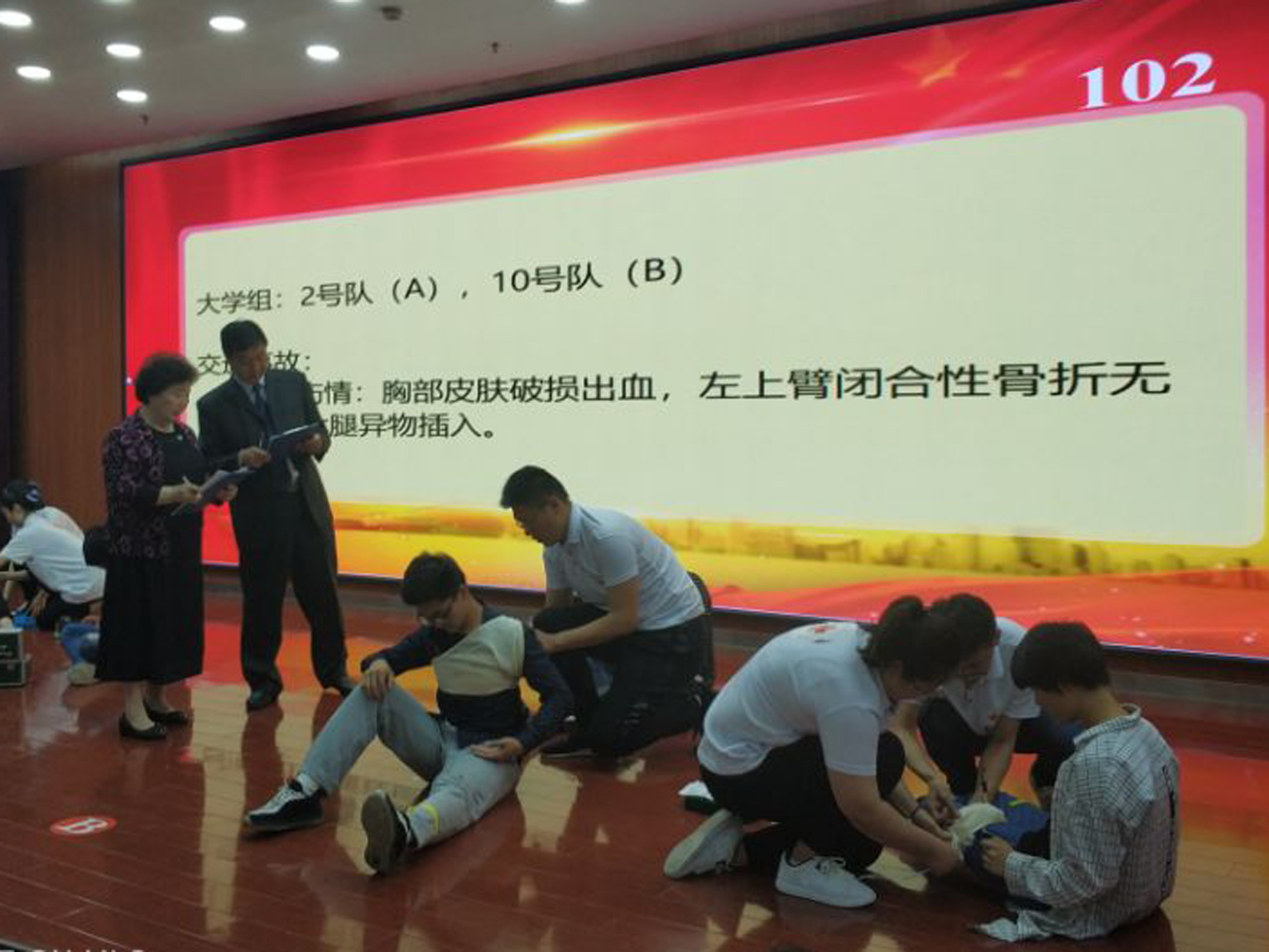 这是我校首次作为代表队参加河南省红十字知识与应急救护技能竞赛,也是新乡区唯一一支高校代表队。从接到任务到比赛日仅有一周时间,时间紧、任务重、责任大。校领导高度重视,由校学务部牵头,团委和临床学院组织,精心选派外总教研室王宇、李栋两位指导老师,通过综合考核选拔郑紫豪、黄晨杰、王旭阳三位同学作为选手参加本次比赛。团委和临床学院前期积极做好各项备战工作,制定出详细的培训计划和竞赛目标。一是搜集各类型笔试试题题库、查阅应急相关预案、条例、工作规范等学习资料让参赛队员进行笔试模拟;二是邀请有竞赛经验的专家老师对应急救援技能操作进行模拟实战考核,对出现的问题进行及时纠正。经过前期紧张而艰苦的集训,我校三名选手凭借出色的发挥和精湛的应急救援技能在60支代表队脱颖而出挺进前十并强取得优异成绩。