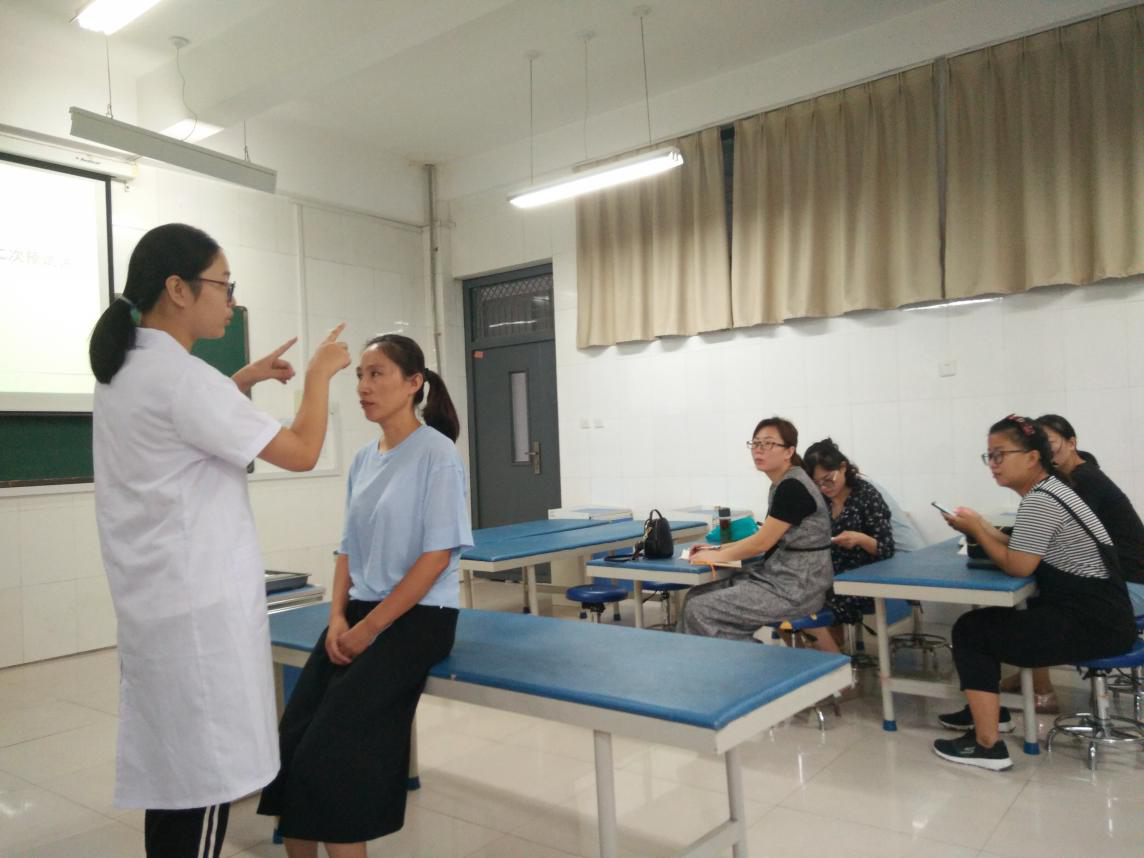活动期间,三位老师就本次课头颈部检查内容进行了讲解。试讲结束后每位参与听课的教师对三位老师都提出了中肯的意见: 1.翻转眼皮时注意手法的规范性;2.甲状腺触诊时强调滑行触诊的手法;3. 相关内容可以衔接得更好。最后严主任对三位教师预试讲给予鼓励,并建议青年教师要多向高年资教师学习,汲取教学经验。