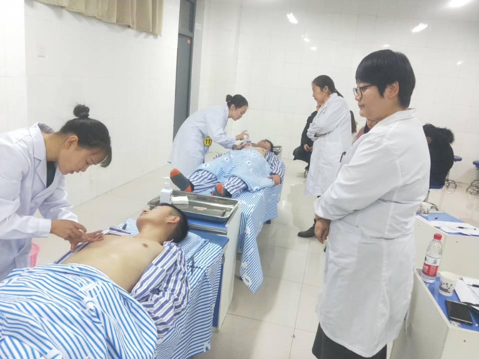 激烈的比赛有序进行,选手依照抽签得到的号码牌分为三组,首先第一组的十名选手在学生助理的带领下进入各自的赛场,其余选手在候场室里反复练习自己的比赛项目。分组依次进行。各位选手亲切的人文关怀,精准的手法,熟练的操作,准确的结果获得了评委们的认可。