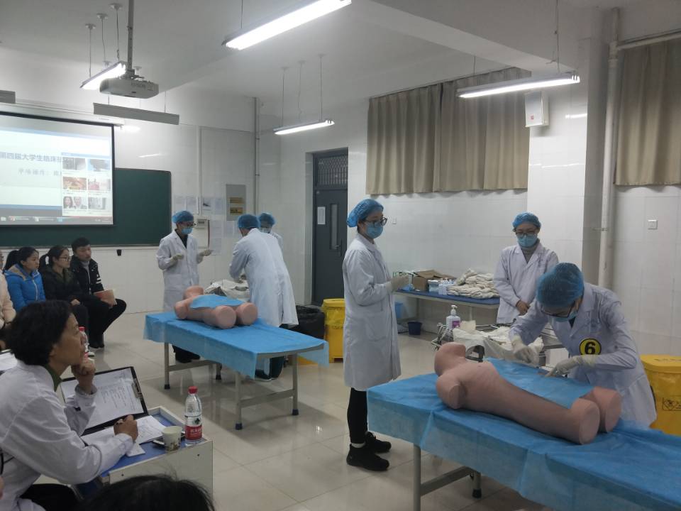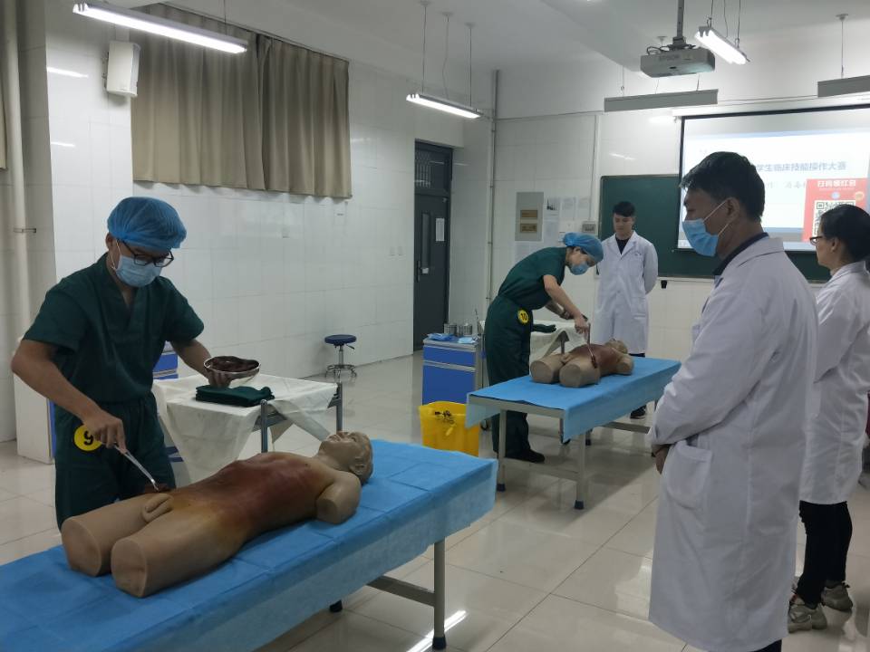 本次比赛涉及外总、诊断两门实验操作内容,包括五个项目,分别是换药、消毒铺巾、心界叩诊、腹腔穿刺、甲状腺触诊。侧重考察选手的基础临床技能的掌握程度。这次比赛的目的是加强选手的临床基础理论、基本技能的培养,提高临床思维能力。