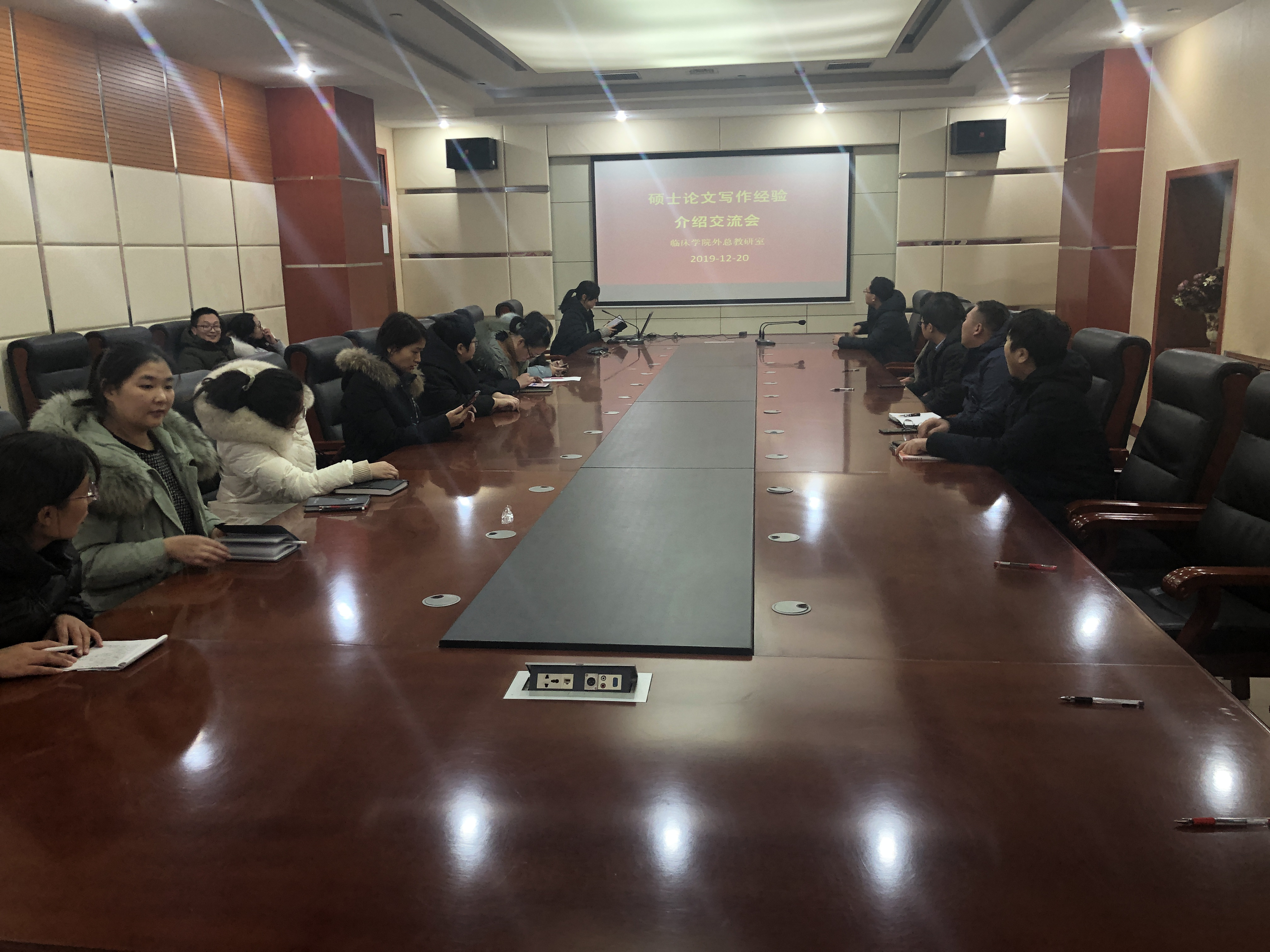 12月20日下午,由临床学院主办外总教研室承办的“硕士论文写作经验交流会”专题介绍活动在新乡校区综合楼二楼会议室举行。刘亚楠老师从“选题、撰写、申报”三部分向在场的教师作了深入浅出的剖析。临床学院全体教师参加此次交流会。
