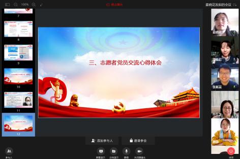 最后,全体党员纷纷表示特殊的主题党日活动,感触极深,要以高度的责任心和使命感投入到抗击疫情的工作中,履职尽责、扎实做好线上教学工作,充分发挥基层党组织的战斗堡垒作用,齐心协力打嬴疫情防控阻击攻坚战!