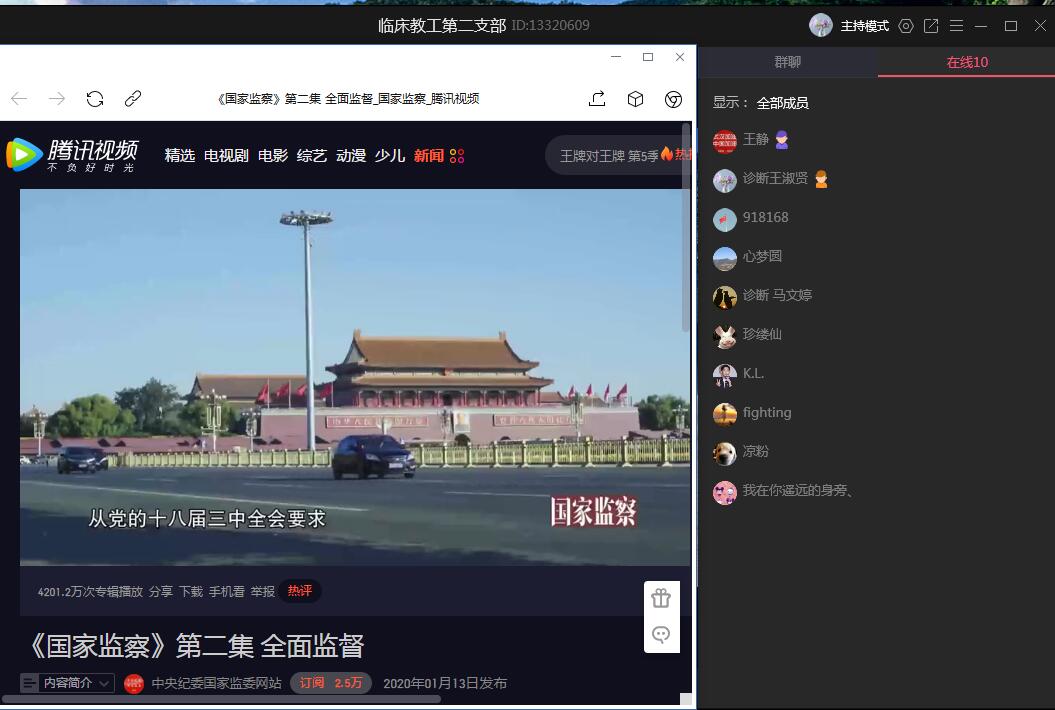 为进一步增强支部党员廉洁自律意识,推动党风廉政建设和反腐败工作向纵深发展,根据学校工作安排,4月15日下午临床教工第二支部通过QQ平台线上组织全体党员观看《国家监察》专题片第二集《全面监督》。
