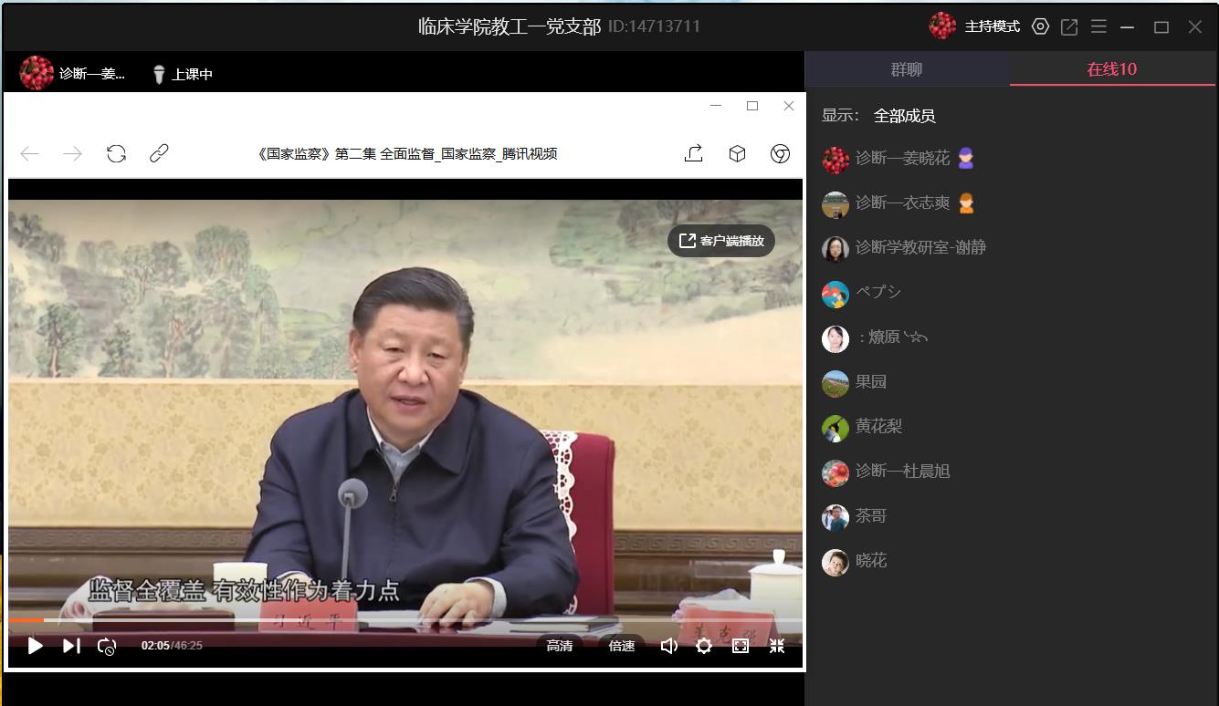 为进一步增强全体党员廉洁自律意识,推动学校党风廉政建设和反腐败工作向纵深发展,根据学校工作安排,4月14日临床教工第一支部通过QQ群课堂的形式组织党员同志观看反腐倡廉教育纪录片《国家监察》之《全面监督》。