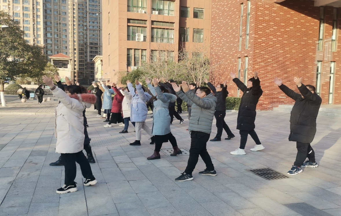 自11月起,每个工作日上午11时20分,随着健身操音乐响起,临床学院的教师们便自发地聚集在问学楼前的空地上,集体做健身操。大家从紧张的工作中短暂抽身,欢声笑语、一起健身。做操的时候,老师们一丝不苟,每一个举臂,每一个转身,每一次弯腰,每一次踢腿,都延续了他们认真负责的工作态度。