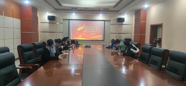 首先,杨凯同志带领大家集中学习了《中共中央关于党的百年奋斗重大成就和历史经验的决议》的说明,从关于党的十九届六中全会议题的考虑、决议稿起草过程、决议稿的基本框架和主要内容3个方面进行讲解。党的十九届六中全会是我们党在“两个一百年”奋斗目标历史交汇关键点上召开的一次承前启后、继往开来的重要会议,会议开创性提出“两个确立”,明确指出我们党百年奋斗历程的 “五大历史意义”,全面概括了“十个坚持”宝贵经验,具有很强的政治性、思想性、战略性和指导性。然后全体党员进行深入讨论,充分发表意见。