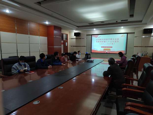 然后,刘涛以《全国教育系统开展法治宣传教育的第八个五年规(2021-2025年)》为题进行相关法律法规的学习。要求党员教师在政治思想的标杆、遵纪守法的榜样、仪表言行的示范、教学改革的先锋等方面发挥好先锋模范作用。并引导全体学生遵纪守法,形成人人知法、人人守法的良好氛围。