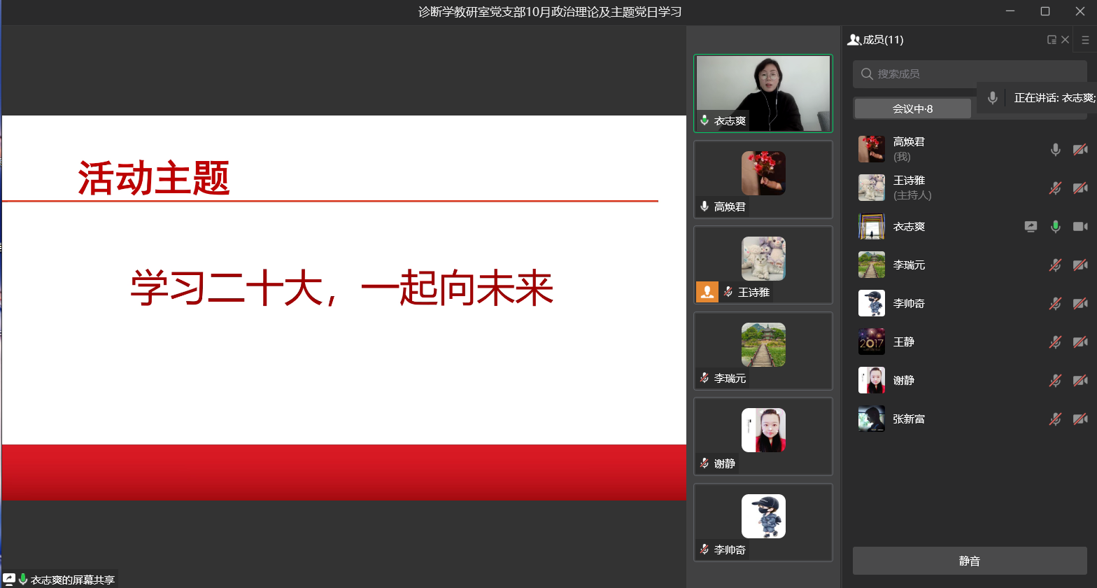 10月28日上午,诊断学教研室党支部通过企业微信在线上开展10月份主题党日活动,诊断学教研室党支部全体党员参加,衣志爽同志主讲。