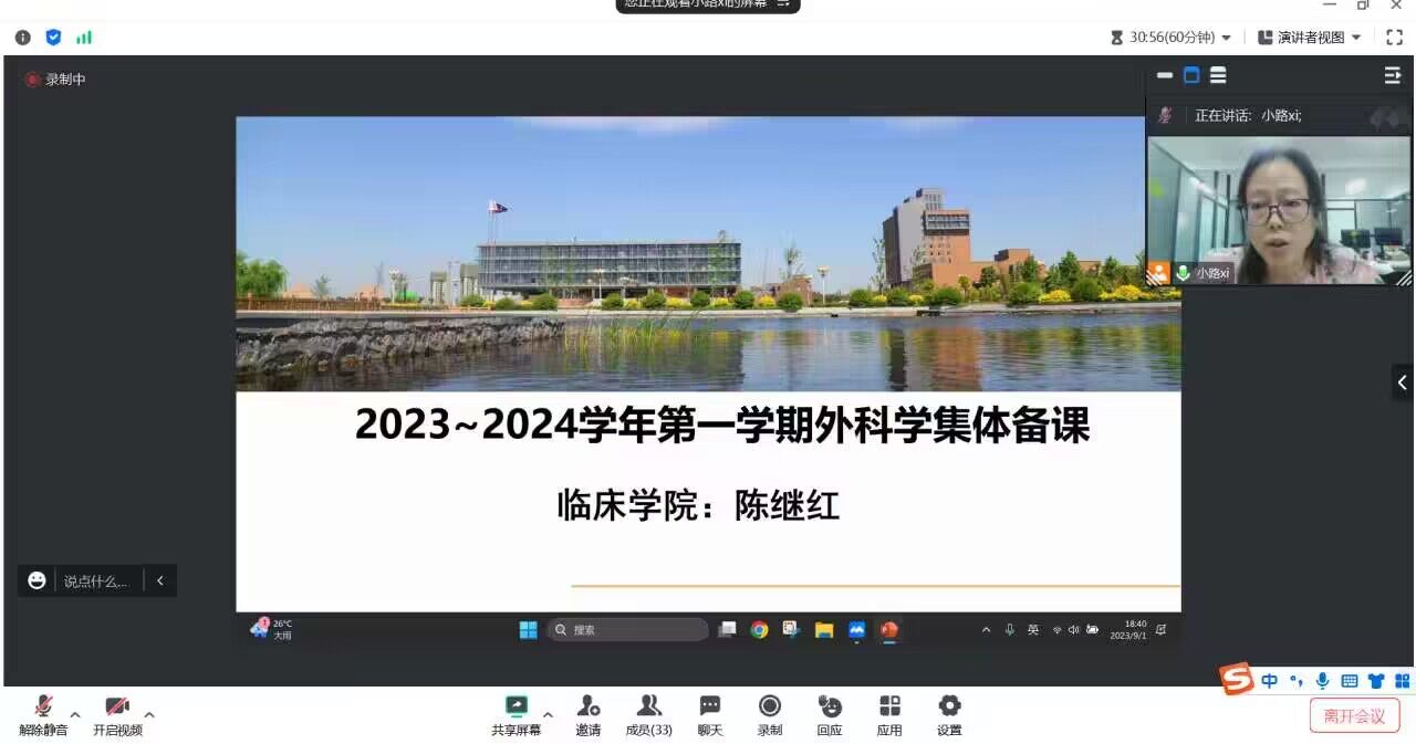 为加强课程和师资队伍建设,推动同质化教学进程,9月1日,临床学院外科学课程教学研究中心联合各教学基地,通过腾讯会议的方式,顺利完成本学期外科学各论一的第一次集体备课。