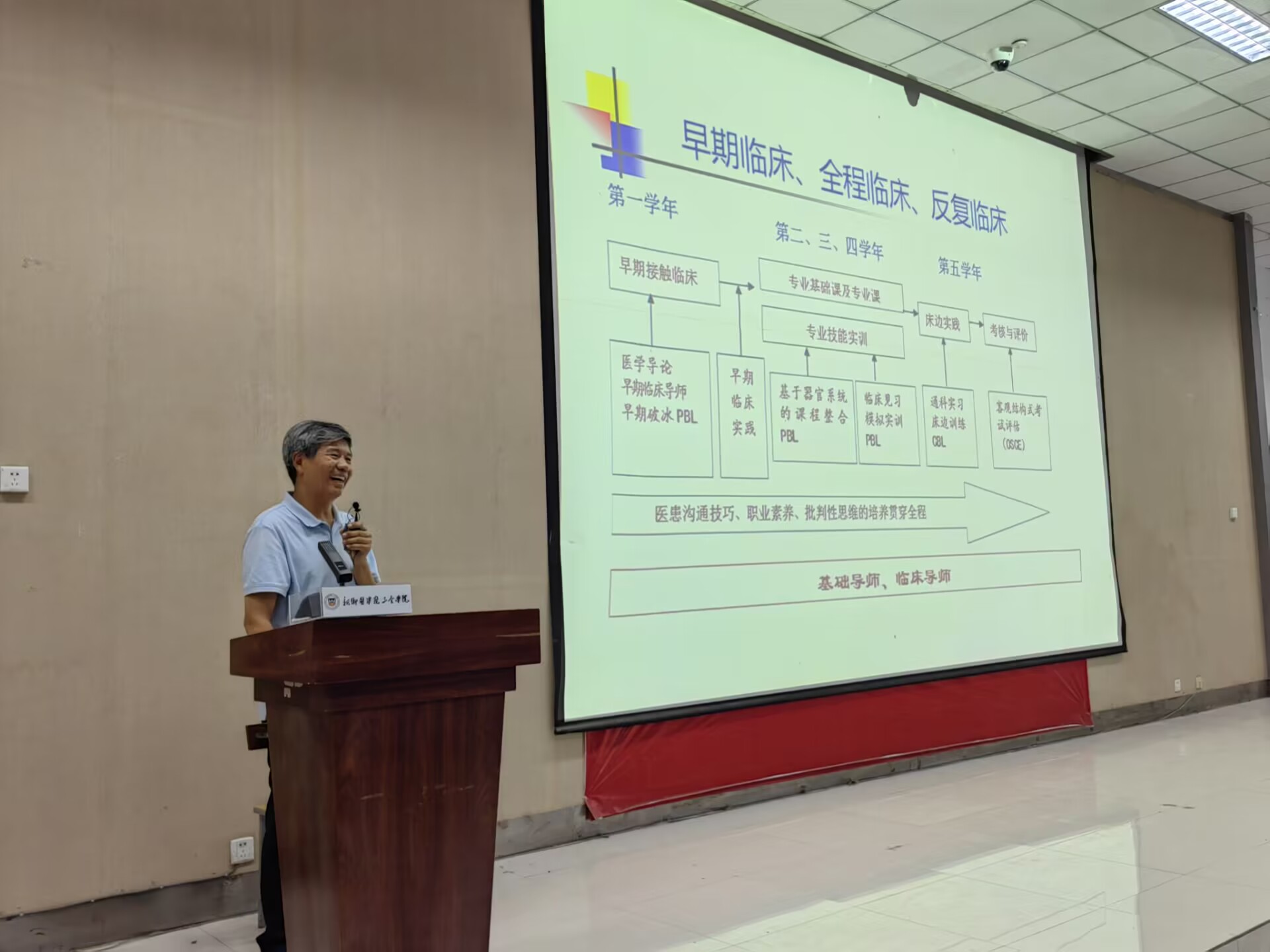 新学期、新征程,临床学院将全面贯彻落实“立德树人”育人宗旨,以新内涵强化医学生培养,加强“救死扶伤的道术、心中有爱的仁术、知识扎实的学术、本领过硬的技术、方法科学的艺术”的教育,努力把医学生培养为德、智、体、美、劳全面发展的白衣天使。