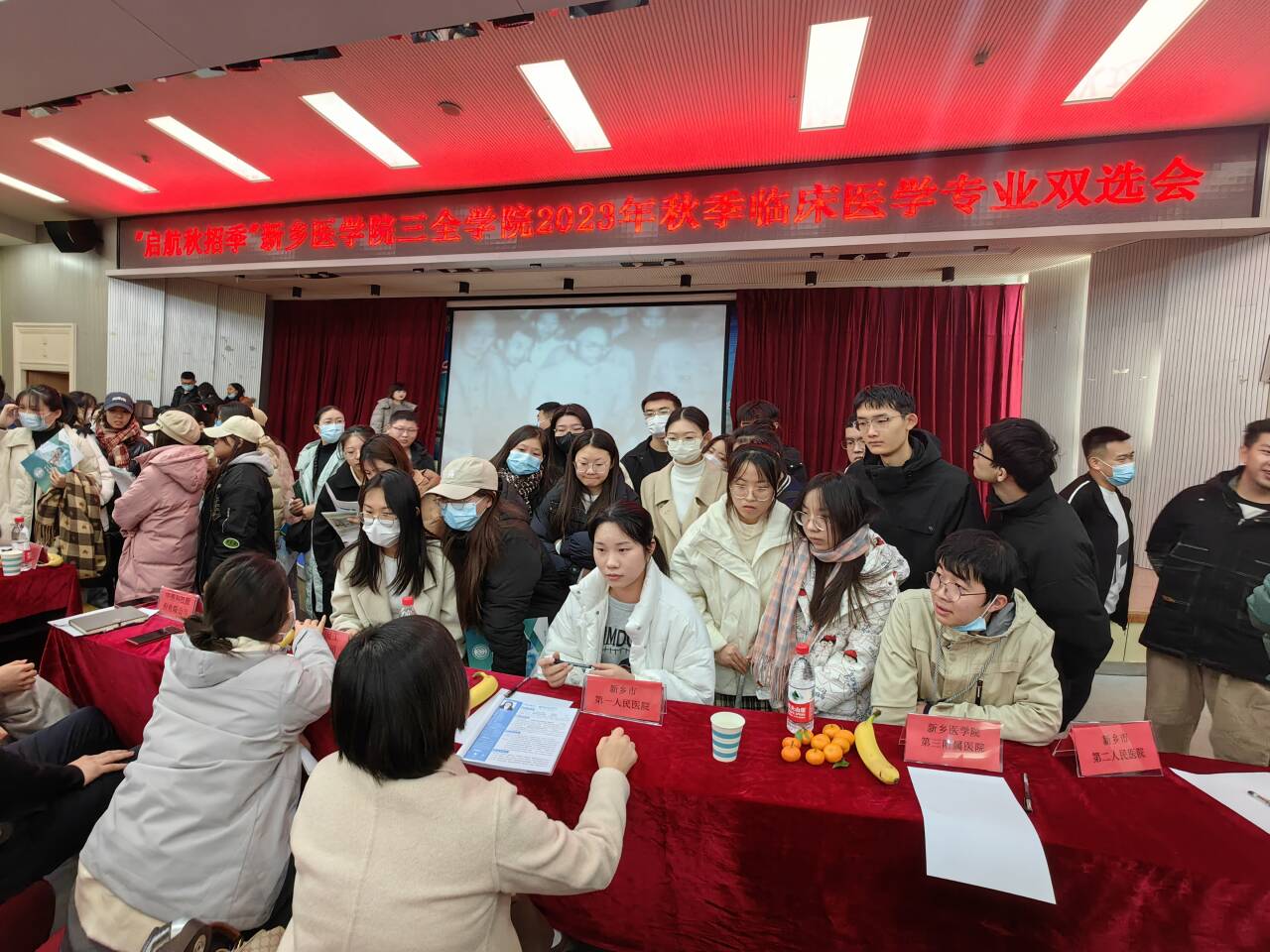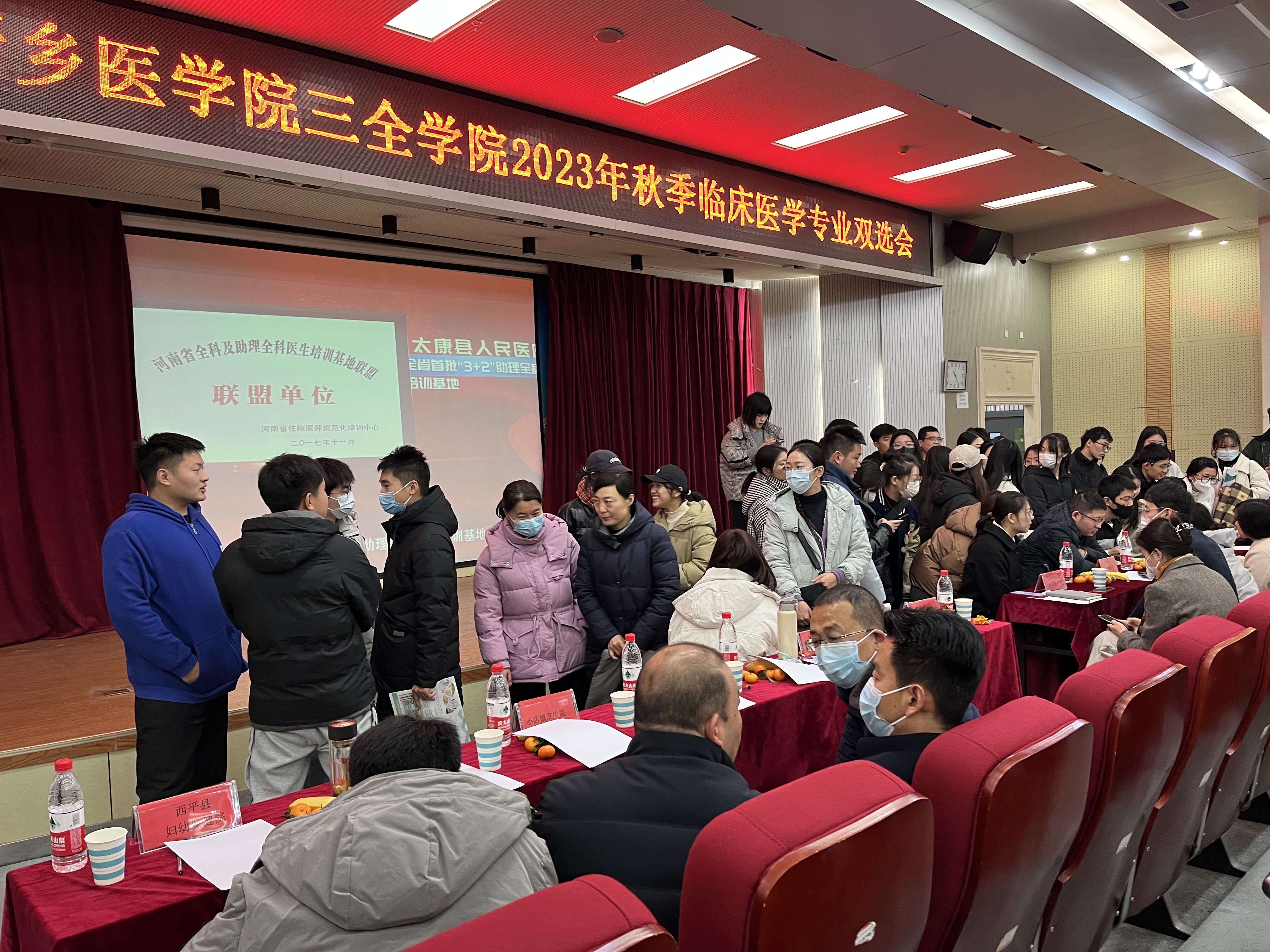 为深入学习贯彻党的二十大精神,落实党中央、国务院“稳就业”“保就业”决策部署,推进我校2024届毕业生更高质量充分就业,向毕业生提供更加优质的就业机会和发展机遇,帮助大家规划正确的职业方向和人生道路,12月2日上午,在我校大学生就业创业指导中心的指导下,临床学院联合精诚书院、智行书院、羲和书院、崇德书院在新乡校区问学楼一楼学术报告厅开展了“启航秋招季”2023年秋季临床医学专业双选会。本次招聘会由临床学院院长路成吉主持,2024届临床医学专业毕业生、在校大四见习学生积极参加了此次活动。本次双选会邀请了新乡医学院第三附属医院、新乡市第一人民医院、林州红旗渠医院、林州市中医院、华兰基因工程有限公司等十余家企业单位参会。
