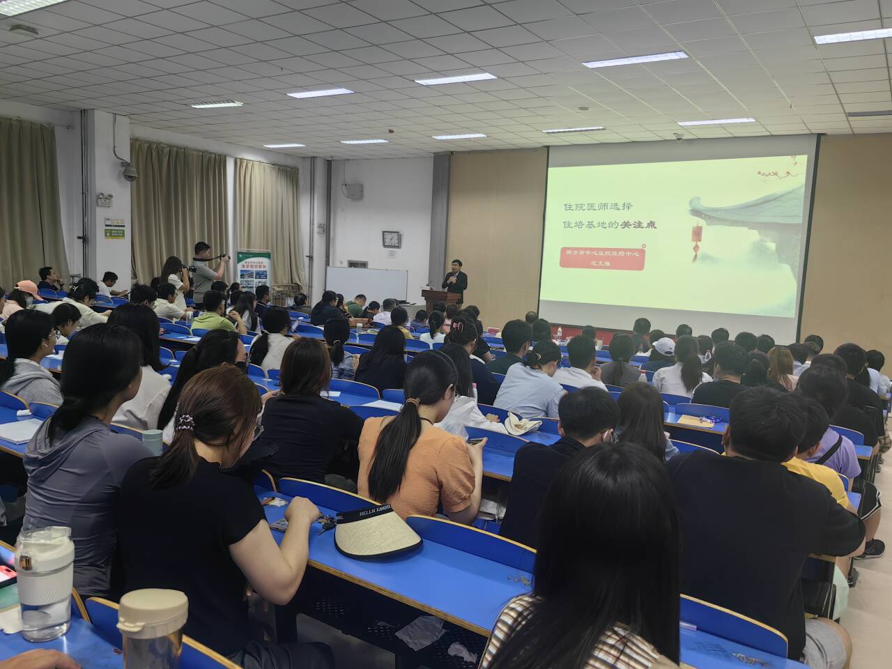 5月10日傍晚,新乡市中心医院来我校临床学院举办了一场住院医师规范化培训招录宣讲会。此次宣讲旨在深入宣传2024年住院医师规范化培训招录政策,为即将毕业的医学生提供更为优质的就业与发展机遇,助力他们科学规划职业道路与人生方向。