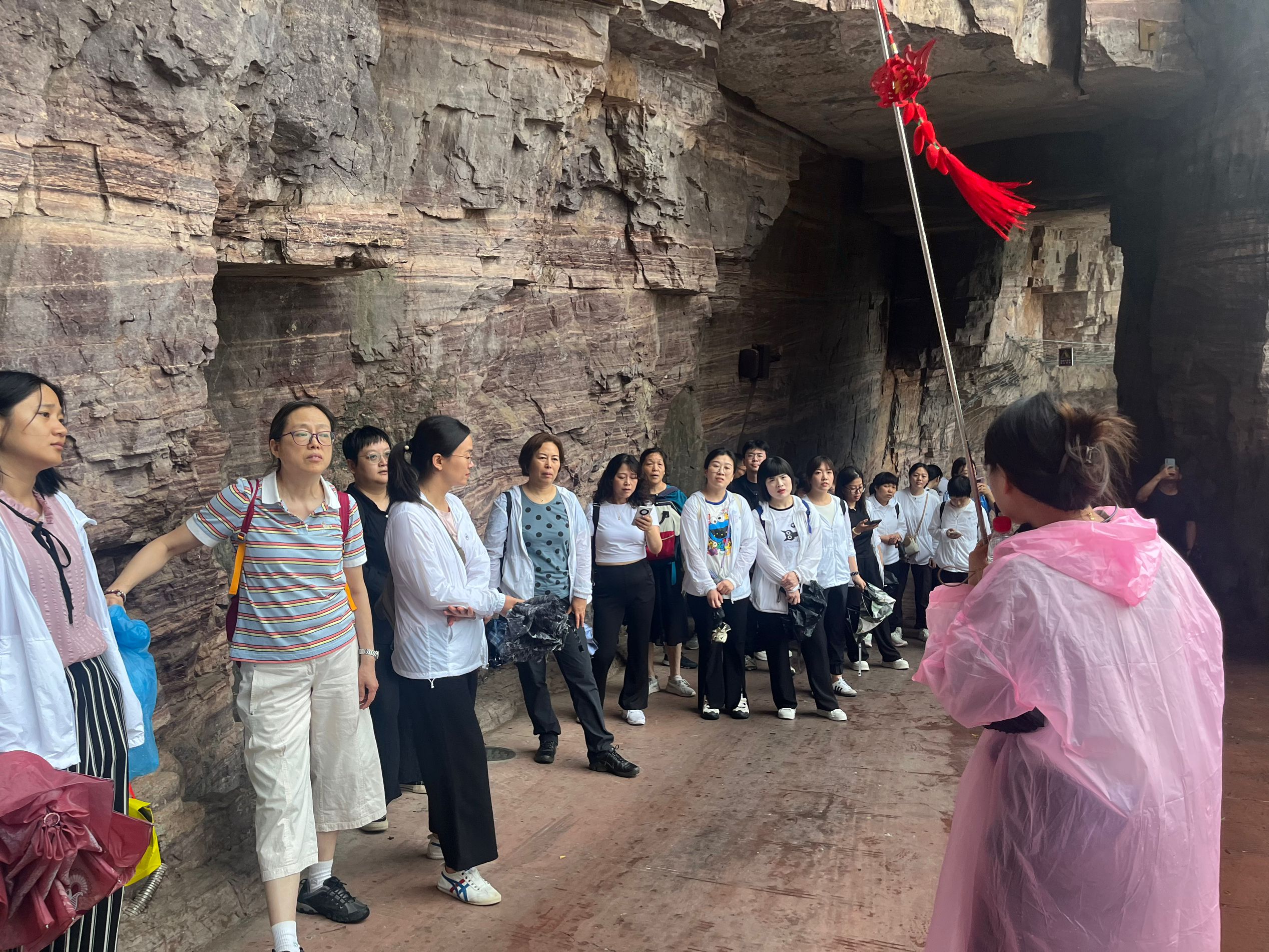 参观教师们怀着无比敬仰的心情参观了代表太行精神的红色教育景点、被称为“世界第九大奇迹”的绝壁长廊—郭亮挂壁公路,感受着太行山人所创造的人间奇迹。随着讲解员声情并茂地讲述着郭亮村人一锤一凿地开凿山洞,历尽千辛万苦,苦战五年,让天堑变通途的壮举,大家被郭亮人这种百折不挠、无坚不摧的伟大精神所震撼着、感动着。当讲到年仅28岁的王怀堂因开凿沙石而牺牲在修路现场的事迹时,每一位老师都忍不住流下热泪。