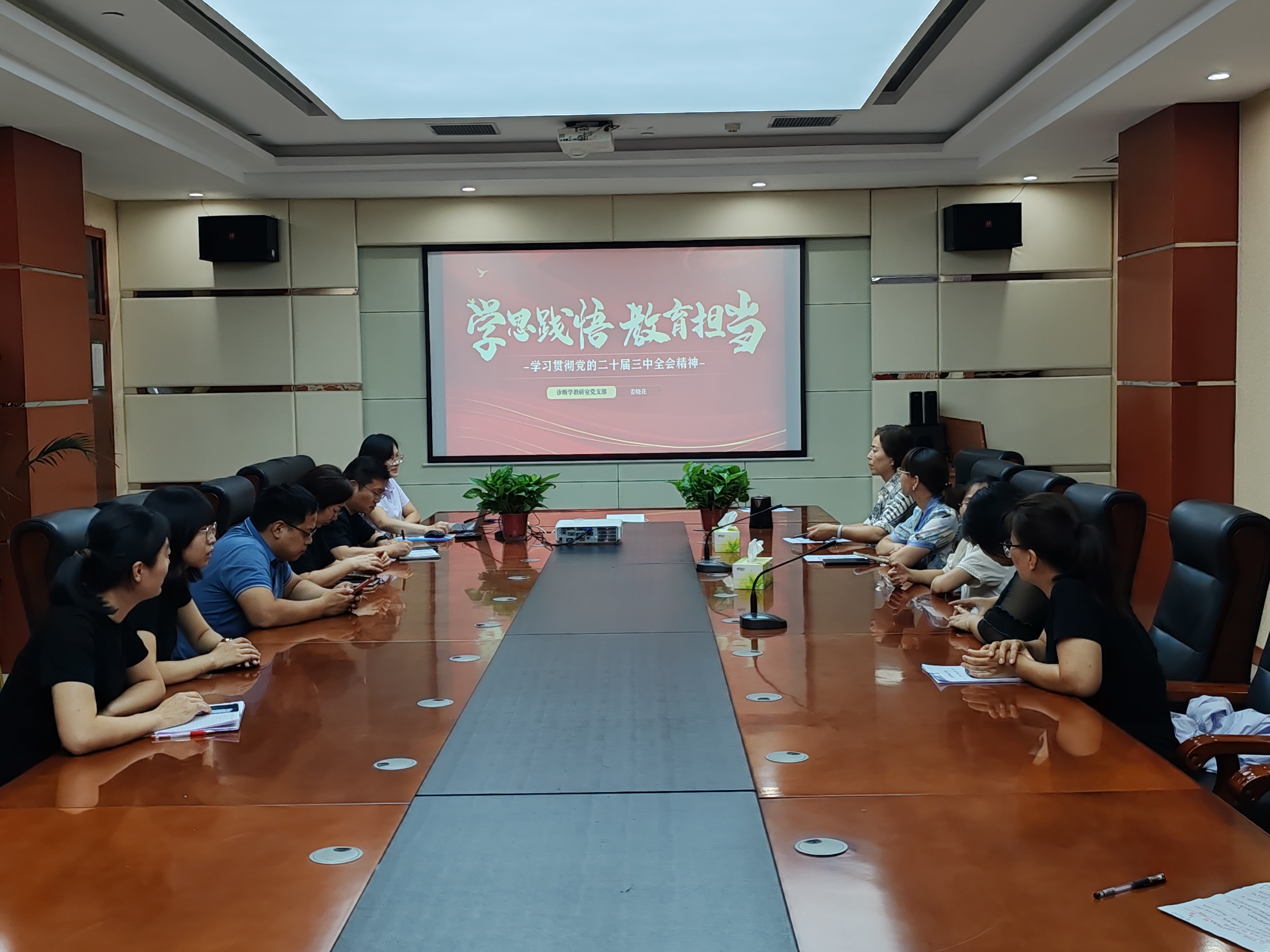 随后,姜晓花以“学思践悟,教育担当”为主题带领全体党员深入学习贯彻党的二十届三中全会精神,引导全体党员深刻领会新时代党的教育方针和政策导向。党员教师们纷纷表示,要将学习成果转化为实际行动,以更加饱满的热情和更加扎实的工作作风投身到教育事业中。
