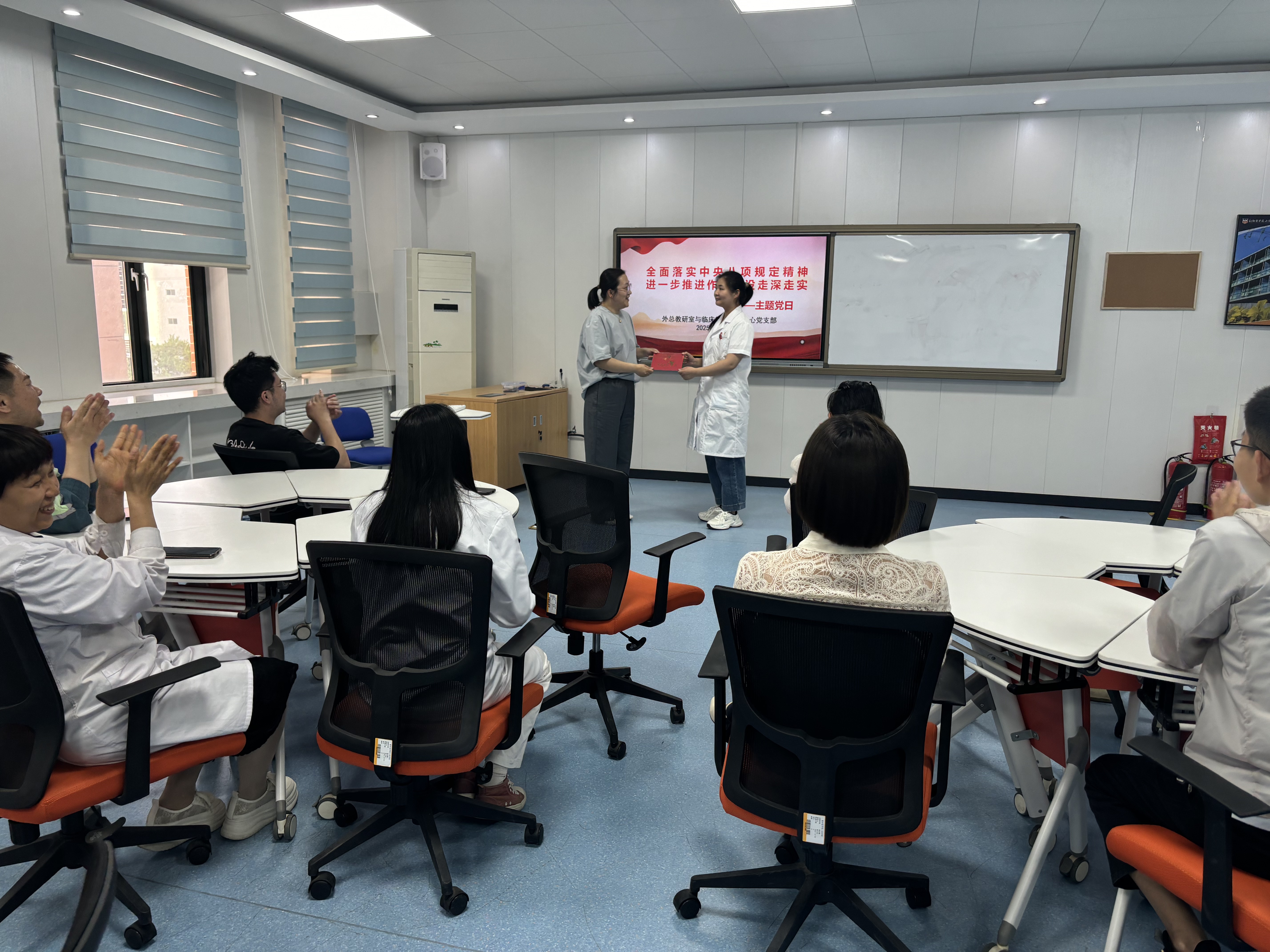 4月29日,外总教研室与临床能力培训中心联合党支部举办了以“全面落实中央八项规定精神,进一步推进作风建设走深走实”为主题的4月份主题党日暨政治理论学习活动。主题党日聚焦八项规定与国家安全,此次活动旨在深化党员对中央八项规定的理解与实践,同时强化国家安全意识,推动平安校园与平安中国建设。