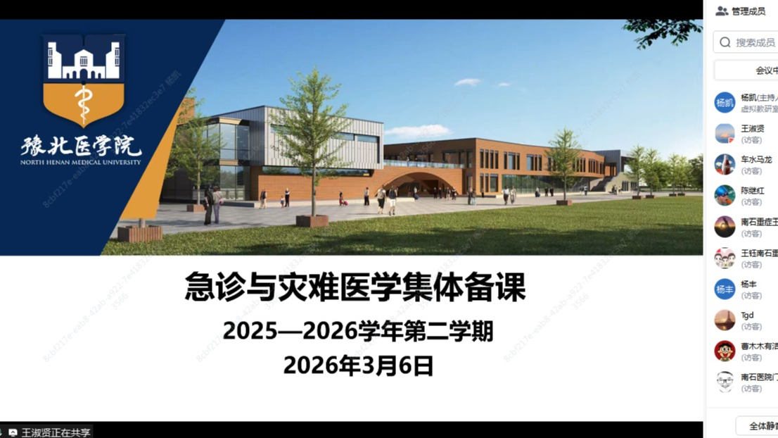为统一教学标准、凝聚教学共识,提升急诊与灾难医学课程教学质量,3月6日,急危重症学课程教学研究中心开展2025-2026学年第二学期急诊与灾难医学集体备课活动。课程授课团队的校内专任教师与教学医院优秀代教老师共同参与,本次备课由急危重症学课程教学研究中心秘书王淑贤主持。