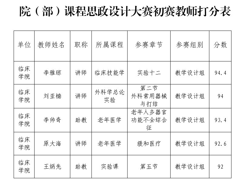 2022年临床学院课程思政设计大赛成绩公示