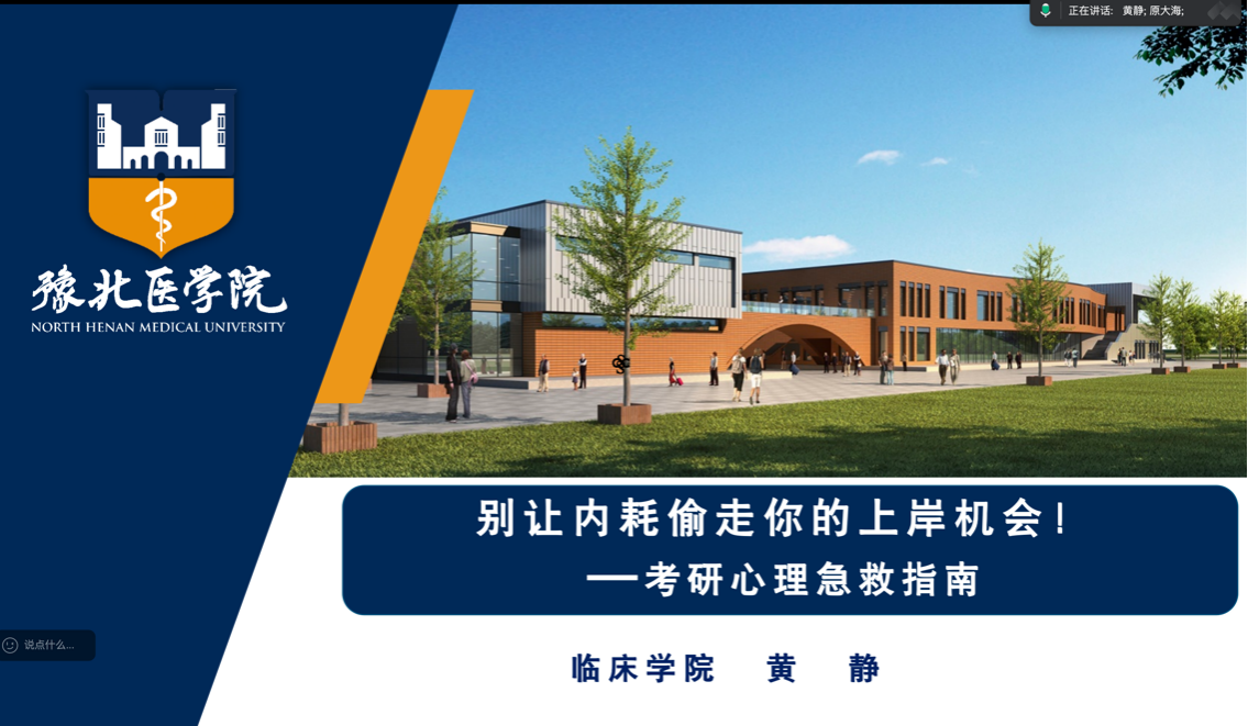 10月16日,临床学院在腾讯会议平台举办“别让内耗偷走你的上岸机会!—— 考研心理急救指南”讲座。临床学院教师黄静围绕考研备考期间的心理压力疏导展开,通过互动测试、方法教学与思维引导,为分散各地的...