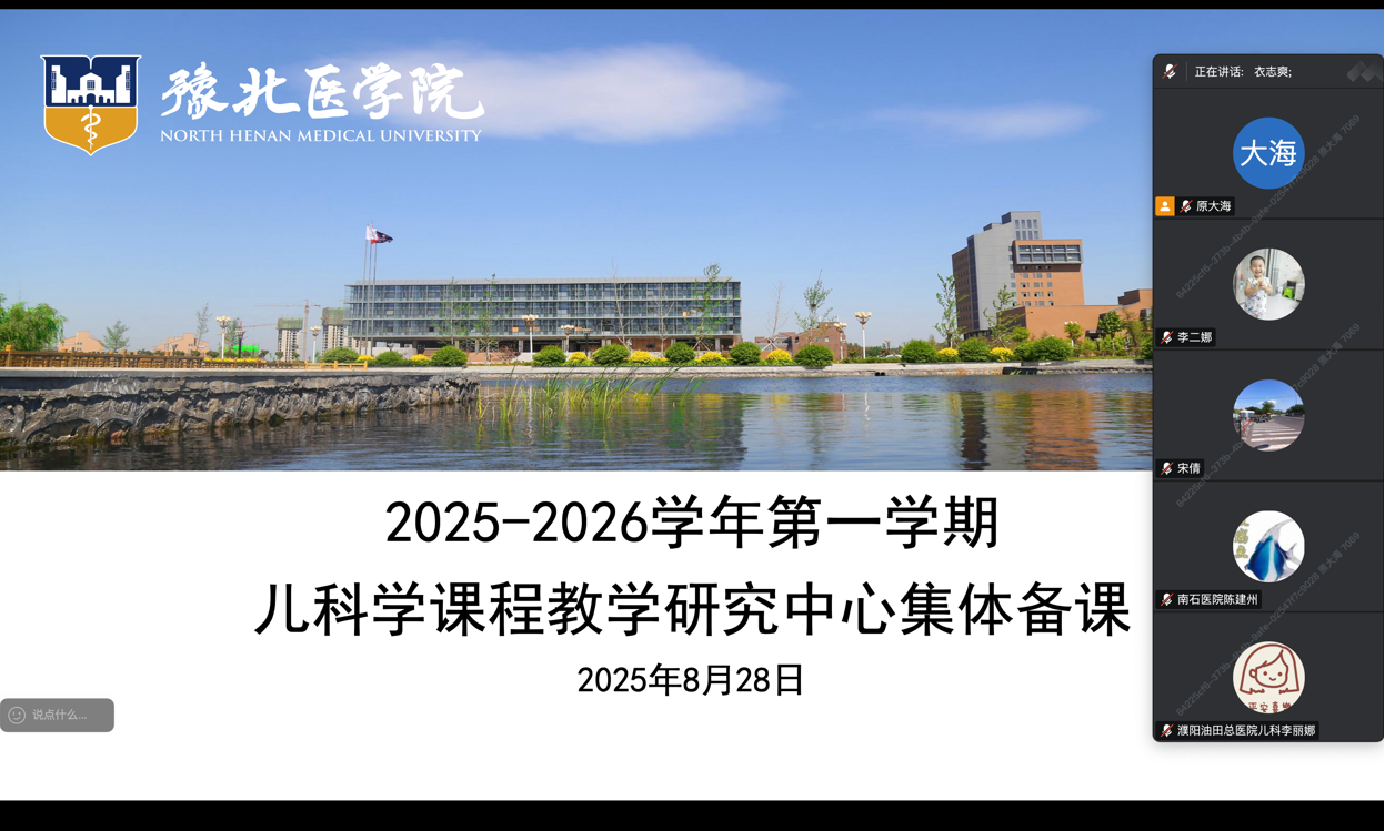 2025年8月28日,豫北医学院儿科学课程教学研究中心联合各教学医院,在腾讯会议共同开展2025-2026学年第一学期首次集体备课活动,旨在统一教学标准、优化教学方案,推进儿科学同质化教学。此次活动由儿科学...