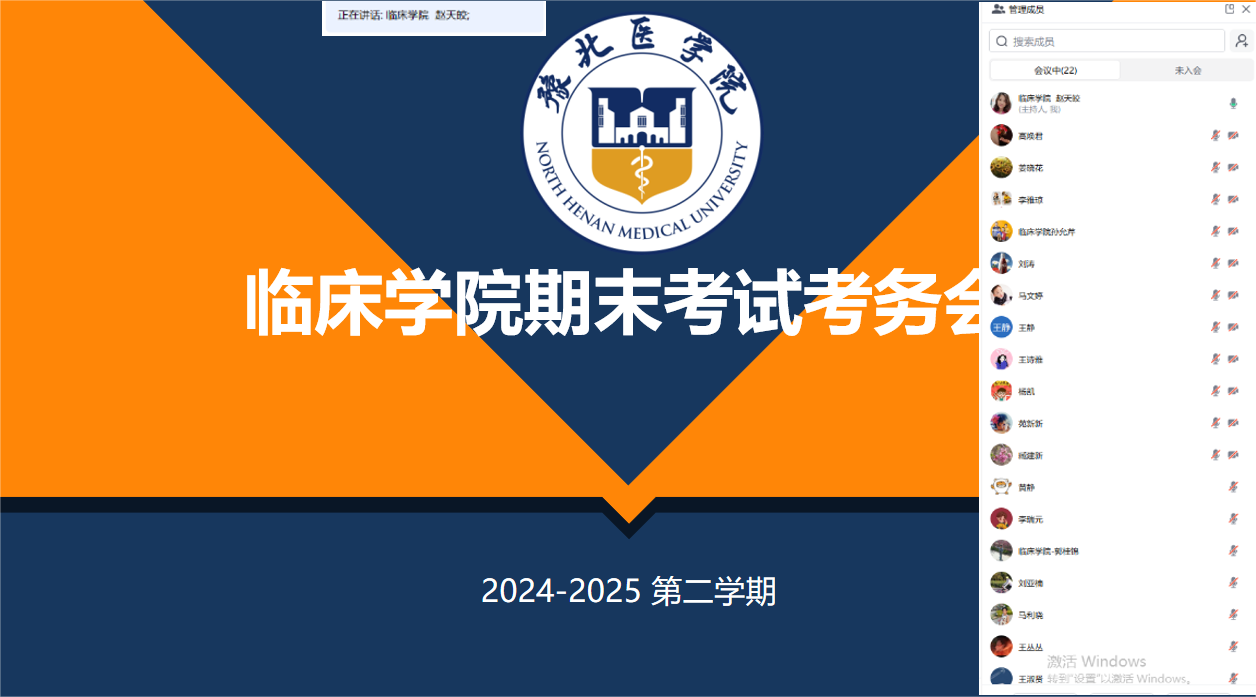 随着2024-2025学年第二学期尾声临近,临床学院于5月7日召开期末考试及见习生、实习生、毕业生考试、重修课考试等线上考务工作会议,全面部署多类型考试组织工作。会议由教学秘书赵天皎主持,围绕“精准分...