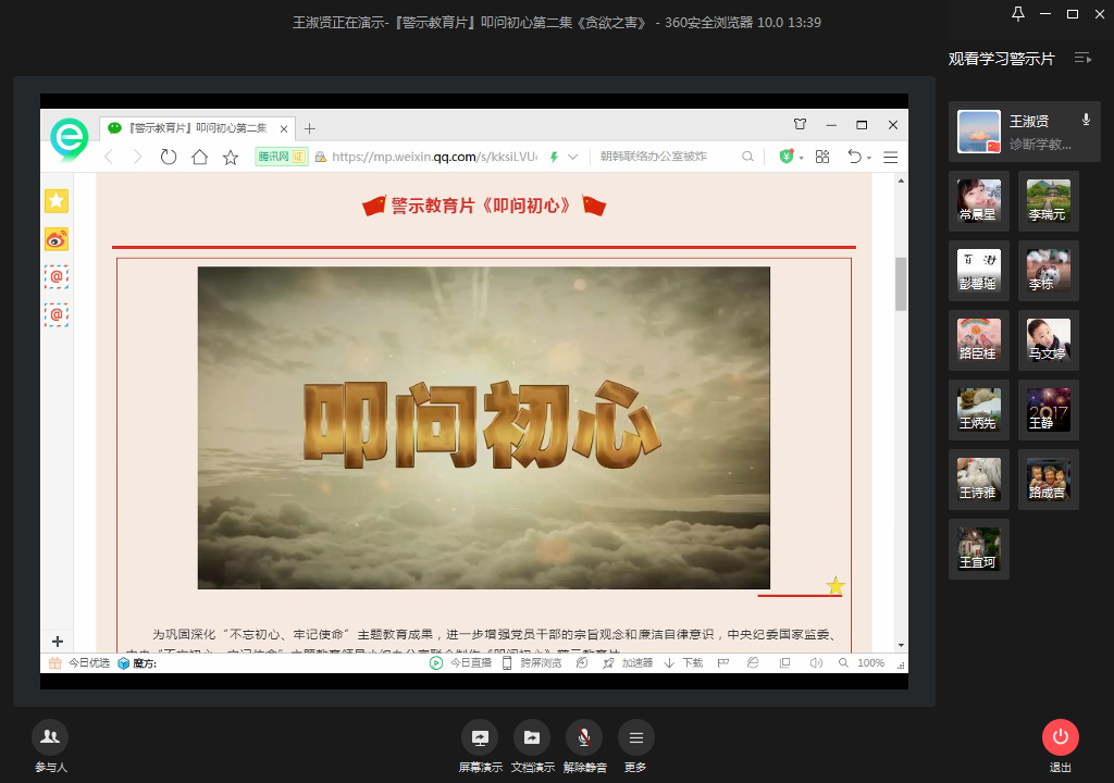 为巩固深化“不忘初心、牢记使命”主题教育成果,进一步增强党员干部的宗旨观念和廉洁自律意识,6月16日下午临床教工第二支部在上级党组织的指示下,全体党员通过企业微信线上观看学习《叩问初心》警示教...