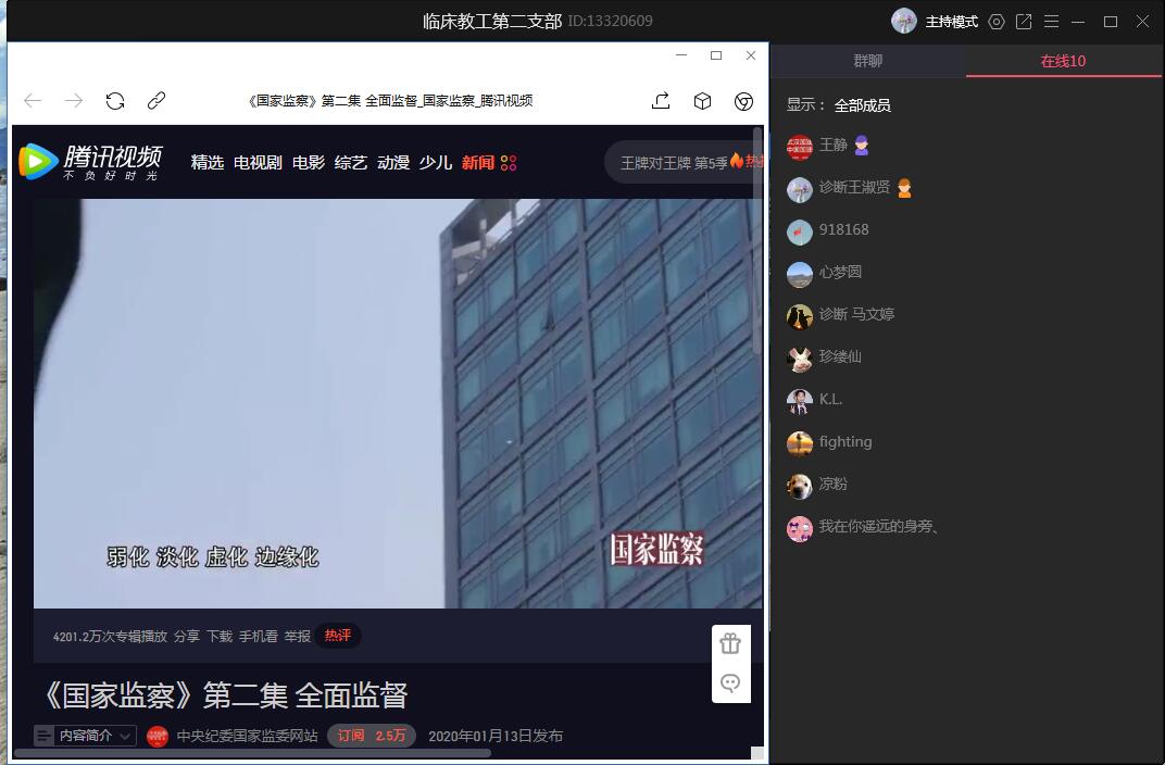为进一步增强支部党员廉洁自律意识,推动党风廉政建设和反腐败工作向纵深发展,根据学校工作安排,4月15日下午临床教工第二支部通过QQ平台线上组织全体党员观看《国家监察》专题片第二集《全面监督》。反...